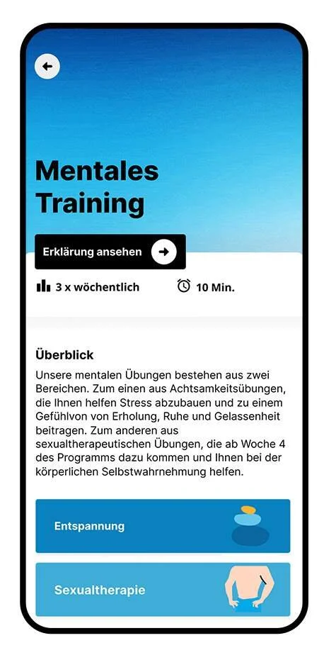 Mit Kranus Edera richten Sie den Fokus in einem gezielten 12-Wochen-Programm auf die zugrundeliegenden Ursachen Ihrer erektilen Dysfunktion.